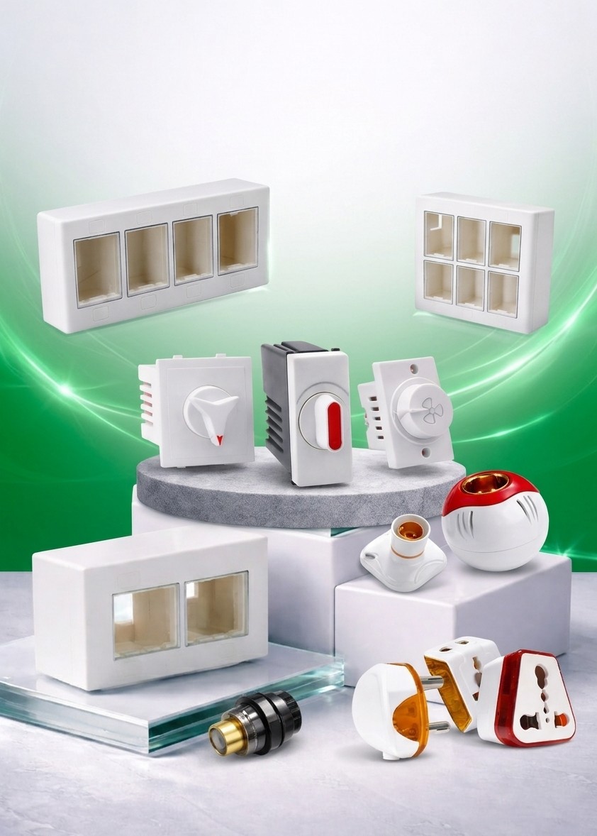 Engineered for compatibility with various bulb types, our holders offer secure fittings and long-lasting performance. Elevate the aesthetics of your interiors with our sophisticated modular plates. Available in a myriad of designs and finishes, our plates seamlessly integrate with your decor while providing a platform for convenient switch and socket installations.